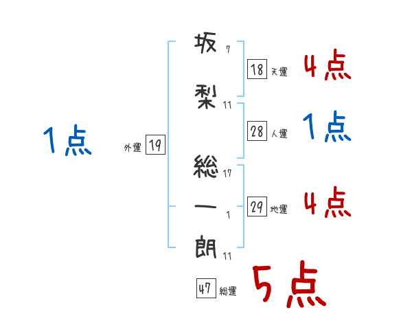 坂梨総一朗さんの画数の鑑定結果