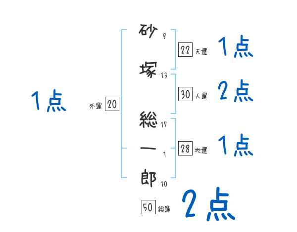 砂塚総一郎さんの画数の鑑定結果