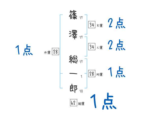 篠澤総一郎さんの画数の鑑定結果