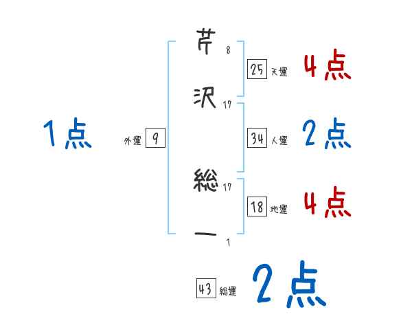 芹沢総一さんの画数の鑑定結果