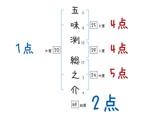 五味渕総之介さんの画数の鑑定結果