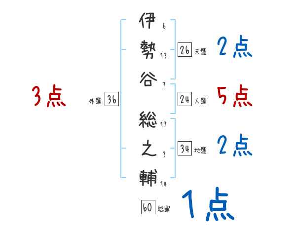 総運![]() | 伊勢谷総之輔さんの総運は60画の1つ星!悲観的で迷いやすい。波乱が多く損をしないように。 あなたの人生を表す1番重要な運勢です。生涯を通じて影響する総合運となり、主に50歳以降の晩年期に影響を及ぼします。 |