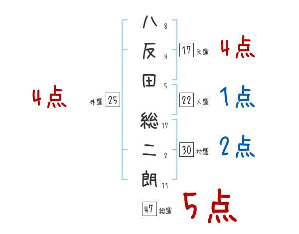 八反田総二朗さんの画数の鑑定結果