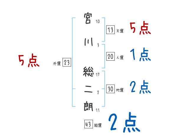 宮川総二朗さんの画数の鑑定結果
