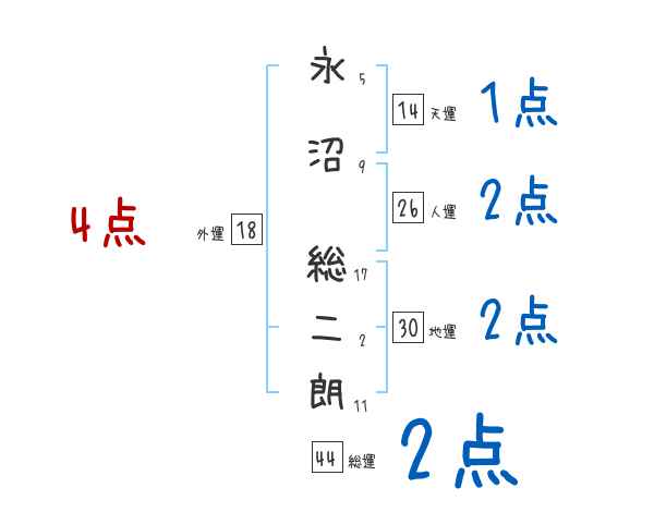 永沼総二朗さんの画数の鑑定結果