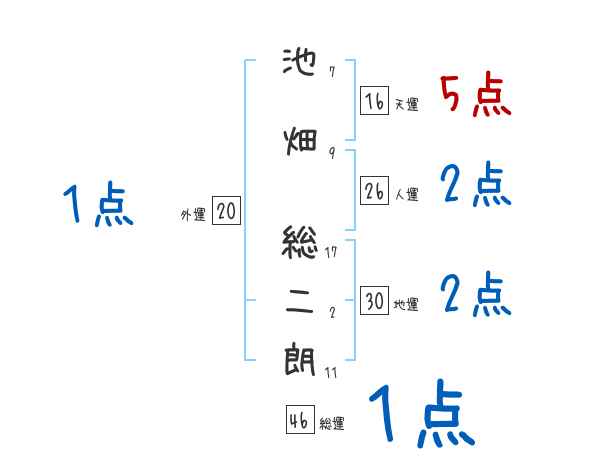 総運![]() | 池畑総二朗さんの総運は46画の1つ星!迷走することが多く苦労するかも。目先のことにとらわれないように。 あなたの人生を表す1番重要な運勢です。生涯を通じて影響する総合運となり、主に50歳以降の晩年期に影響を及ぼします。 |