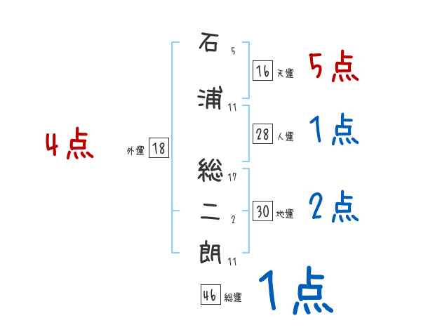 石浦総二朗さんの画数の鑑定結果