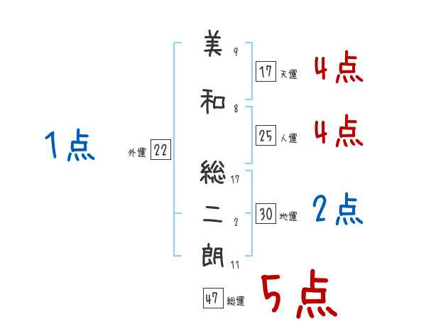 美和総二朗さんの画数の鑑定結果