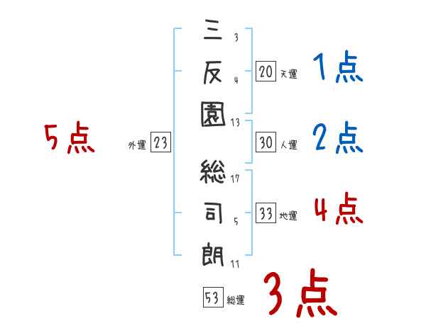 三反園総司朗さんの画数の鑑定結果