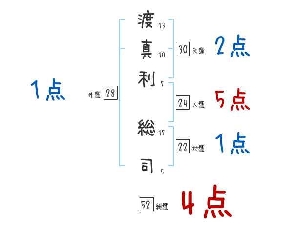 渡真利総司さんの画数の鑑定結果