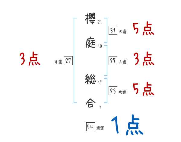 櫻庭総合さんの画数の鑑定結果