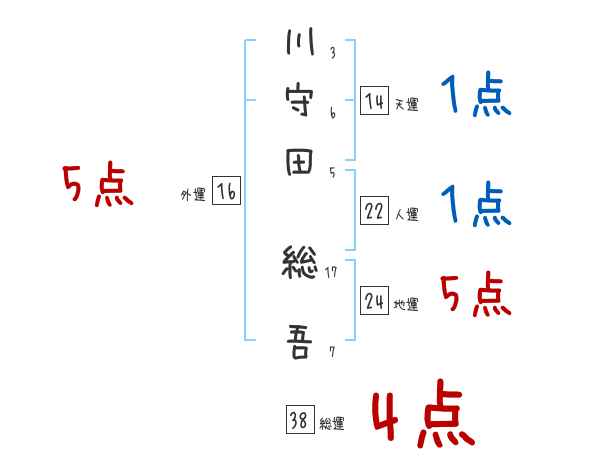川守田総吾さんの画数の鑑定結果