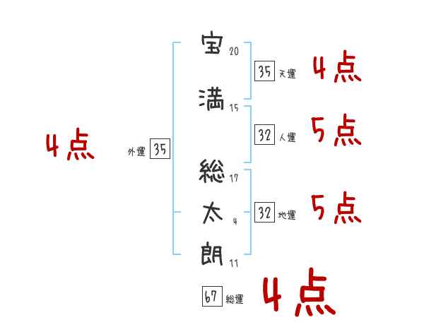 宝満総太朗さんの画数の鑑定結果