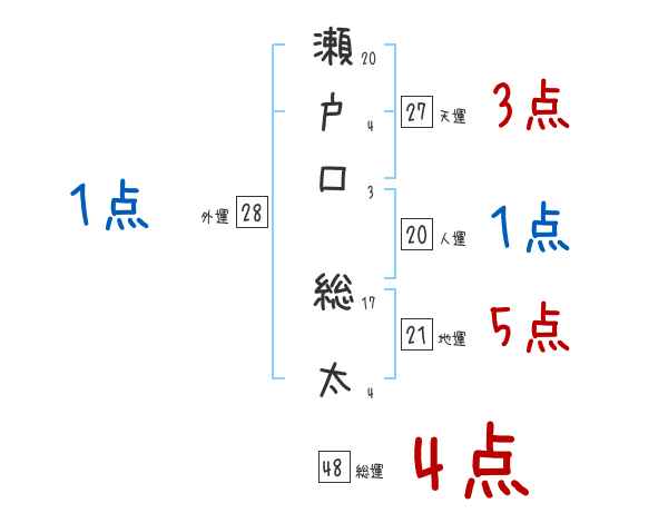 瀬戸口総太さんの画数の鑑定結果