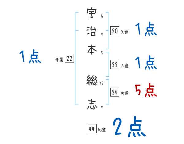 宇治本総志さんの画数の鑑定結果