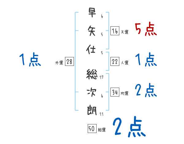 早矢仕総次朗さんの画数の鑑定結果