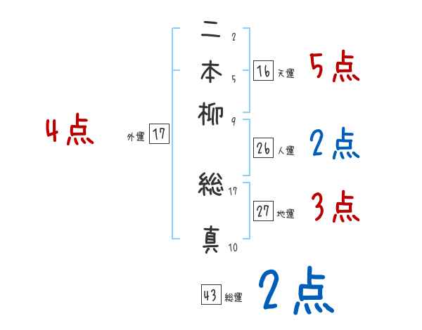二本柳総真さんの画数の鑑定結果