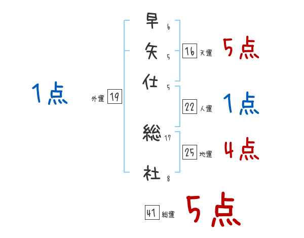 早矢仕総社さんの画数の鑑定結果
