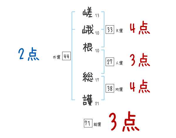 嵯峨根総護さんの画数の鑑定結果