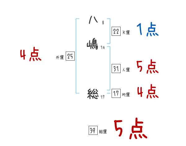 総運![]() | 八嶋総さんの総運は39画の5つ星!社交性に優れ人望が厚い。人の上に立ち成功する。 あなたの人生を表す1番重要な運勢です。生涯を通じて影響する総合運となり、主に50歳以降の晩年期に影響を及ぼします。 |