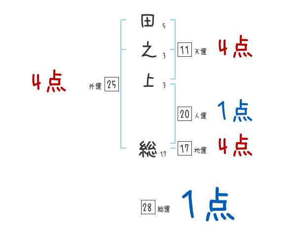 総運![]() | 田之上総さんの総運は28画の1つ星!家庭環境に注意。スポーツで活躍できる能力があるかも。 あなたの人生を表す1番重要な運勢です。生涯を通じて影響する総合運となり、主に50歳以降の晩年期に影響を及ぼします。 |