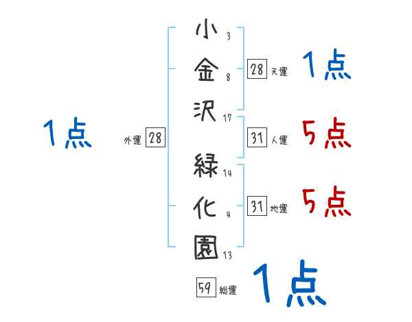 小金沢緑化園さんの画数の鑑定結果