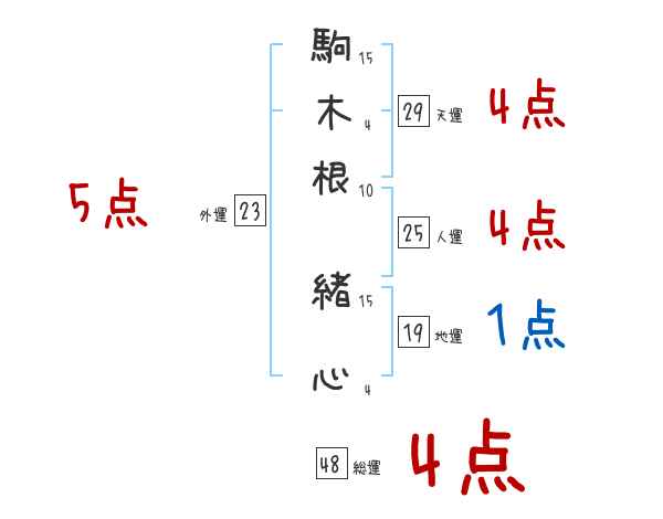 天運![]() | 駒木根緒心さんの天運は29画の4つ星!完全主義で才能がある。厳格な心の持ち主。 家系が持つ宿命的な運勢を表します。祖先から受け継いだ苗字ですので自分の力が及びません。家柄を象徴します。 |