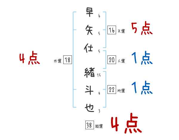 天運![]() | 早矢仕緒斗也さんの天運は16画の5つ星!人望が厚く大きく発展する。逆転成功が見える。 家系が持つ宿命的な運勢を表します。祖先から受け継いだ苗字ですので自分の力が及びません。家柄を象徴します。 |
