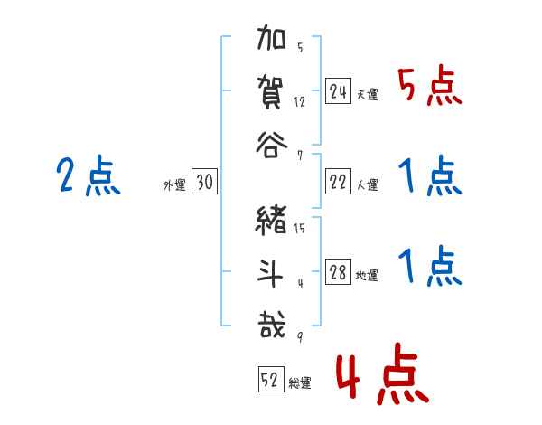 加賀谷緒斗哉さんの画数の鑑定結果