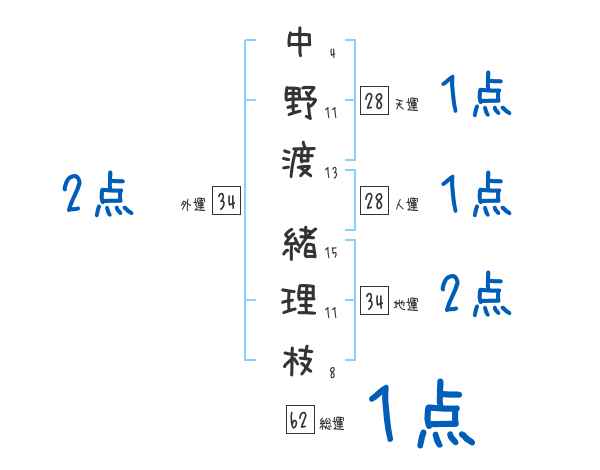外運![]() | 中野渡緒理枝さんの外運は34画の2つ星!独創性に優れるが、自尊心が強く災難に注意しましょう。 生活面を象徴する運勢です。外部から受ける影響力を表し、結婚運、家庭運や職場、環境への順応性を表します。 |