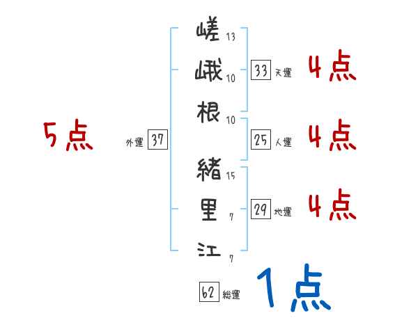 外運![]() | 嵯峨根緒里江さんの外運は37画の5つ星!努力家で順応性に優れる。現実的な考え方ができ忠実に物事をこなす。 生活面を象徴する運勢です。外部から受ける影響力を表し、結婚運、家庭運や職場、環境への順応性を表します。 |