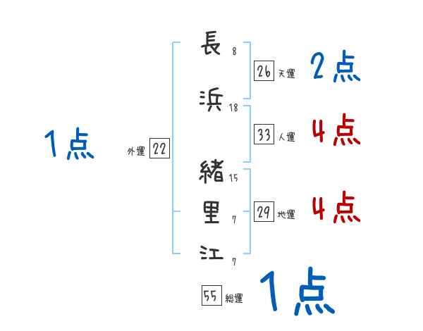 外運![]() | 長浜緒里江さんの外運は22画の1つ星!努力することが苦手ないっぽう手先が器用。芸術性にも優れる。 生活面を象徴する運勢です。外部から受ける影響力を表し、結婚運、家庭運や職場、環境への順応性を表します。 |