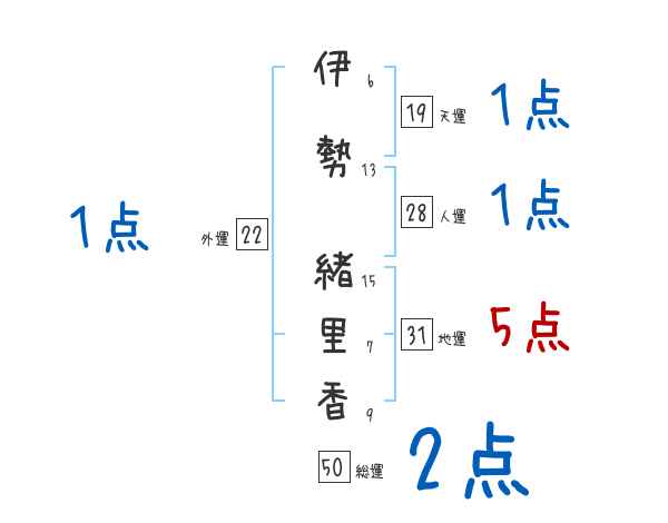 総運![]() | 伊勢緒里香さんの総運は50画の2つ星!浮き沈みが激しく不安定。しりすぼみに衰退しやすいので注意しましょう。 あなたの人生を表す1番重要な運勢です。生涯を通じて影響する総合運となり、主に50歳以降の晩年期に影響を及ぼします。 |