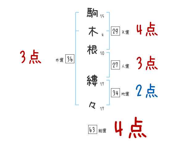 駒木根縷々さんの画数の鑑定結果