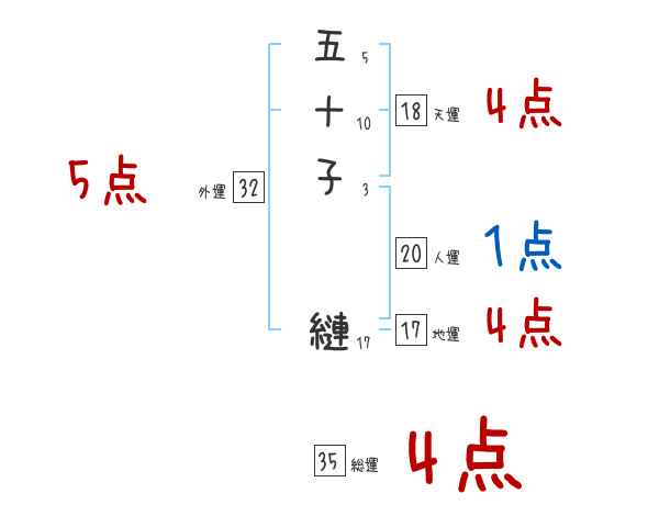 五十子縺さんの画数の鑑定結果