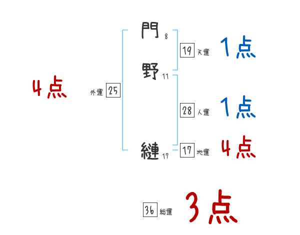 門野縺さんの画数の鑑定結果