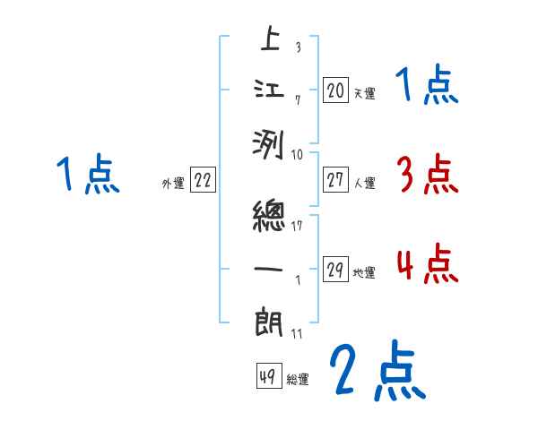 上江洌總一朗さんの画数の鑑定結果