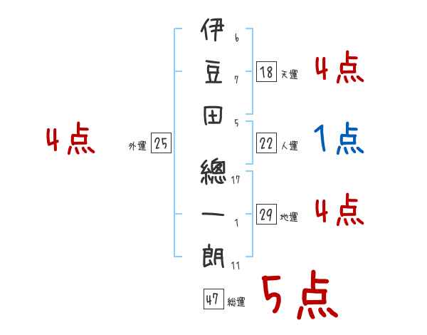 伊豆田總一朗さんの画数の鑑定結果