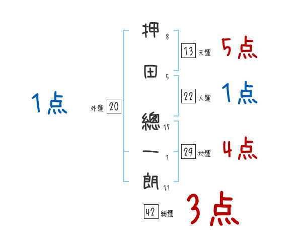 押田總一朗さんの画数の鑑定結果