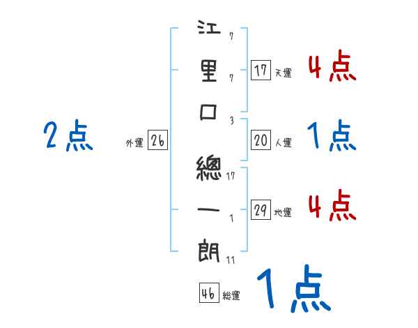 江里口總一朗さんの画数の鑑定結果