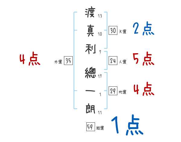 渡真利總一朗さんの画数の鑑定結果