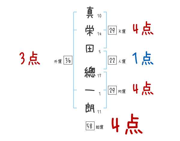 真栄田總一朗さんの総運は58画の4つ星