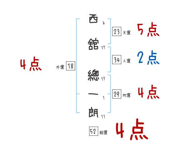 西舘總一朗さんの画数の鑑定結果