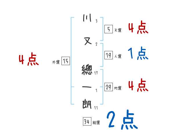 家系が持つ宿命的な運勢を表します。祖先から受け継いだ苗字ですので自分の力が及びません。家柄を象徴します。
