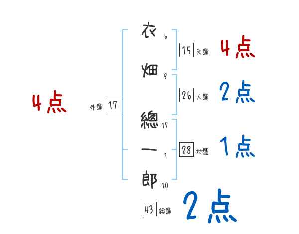 衣畑總一郎さんの画数の鑑定結果