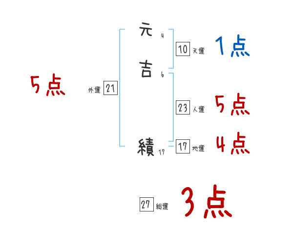 元吉績さんの画数の鑑定結果