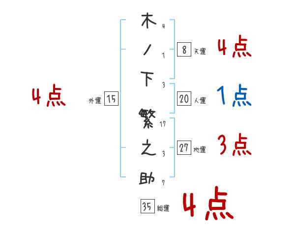 木ノ下繁之助さんの画数の鑑定結果