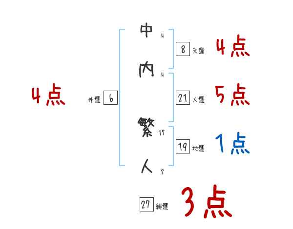 人運![]() | 中内繁人さんの人運は21画の5つ星!統率力がある。独立し成功する。名誉を手に入れる。 性格や才能などを表す2番目に重要な運勢です。人間関係や協調性、社会的な成功に影響します。主に20歳から50歳ぐらいまでの中年期の運勢を表します。 |