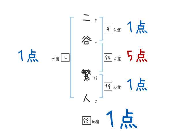 二谷繁人さんの画数の鑑定結果