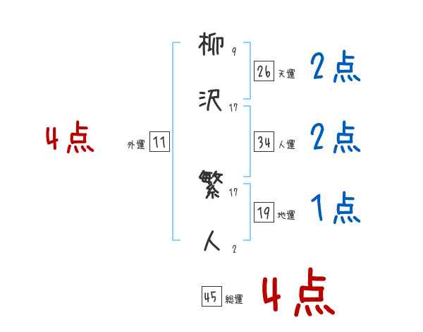 総運![]() | 柳沢繁人さんの総運は45画の4つ星!もくもくと物事を進め達成する。地味な努力家。 あなたの人生を表す1番重要な運勢です。生涯を通じて影響する総合運となり、主に50歳以降の晩年期に影響を及ぼします。 |